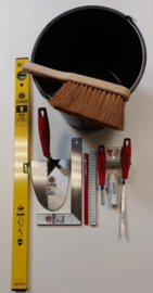 Gereedschapspakket metselaar rechtshandig: 12 stuks gereedschap, zie uitgebreide omschrijving